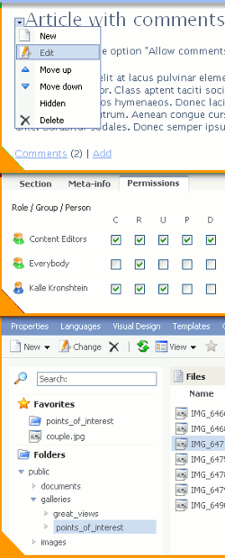 - modul za statične web stranice (najčešće Rich-Text Editor - RTE; kao Word - uređivač teksta),